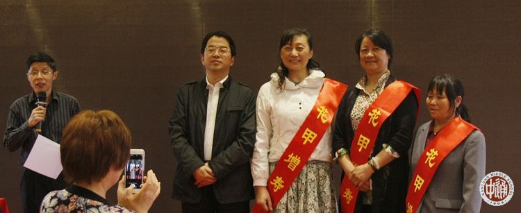 祝寿活动由工会主席陆刘华主持,校党委书记朱全中代表学校为今年适逢整生日的17位老师披挂祝寿彩带。