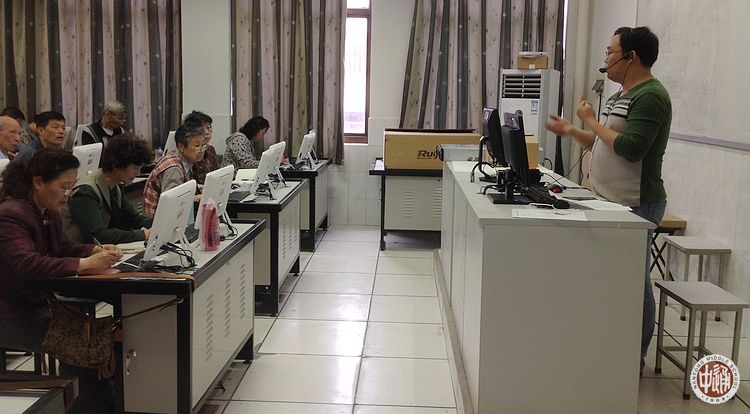 5月18日上午,离退休老同志网络信息新技术培训班开班第一讲在学校计算机房举行。近四十位离退休老同志冒雨到校参加培训。