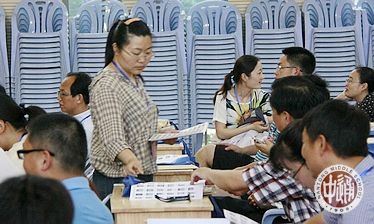 6月8日,是2015年江苏省高考第二天,今天只有下午一场英语科目考试。下午2:55,工作人员安全顺利地从市招办将英语科目考试的试卷袋、答题卡袋领回考点,并按照规定移交给保密工作组。在认真细致地清点完后,工作人员依次将本场考试的试卷袋、答题卡袋、条形码、草稿纸等发放到各考场监考员手中;监考人员依次检查试卷袋、答题卡袋、密封膜是否破损,条形码是否属于本考场。
