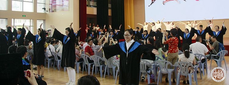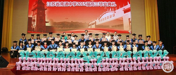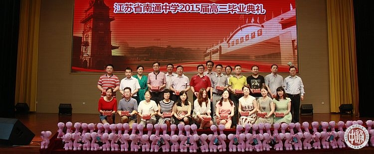 毕业典礼在观看《毕业典礼》的开场视频中拉开帷幕;三年来与同学们朝夕相处的教师代表了表演鼓舞《激情鼓舞》,为即将离开母校的学子们送上新征程的祝福,老师们的激情表演点燃了会场内的热情,博得了阵阵掌声和欢呼声;在背景视频《我们的青春记忆》的光影溯回中,校领导为高三年级学生代表颁发毕业贺书,赠送毕业纪念册,学校精心设计制作的毕业纪念册,寄托了母校对即将远行的学子的殷切希望和美好祝福;北大、复旦、川大等全国知名高校的校友们通过视频《我在大学等你》,为15届的学弟学妹们送来祝福和勉励,其中,我校2014届校友、美国加州大学伯克利分校经济系江奕宸重新填词,我校2011届校友、南京大学建筑系吴家禾演唱的通中版本《时间都去哪儿了》将活动推向高潮;高三9班师生诗朗诵《相伴三载,感谢有你》生动再现了三年来通中生活的刻骨铭心;高三年级全体任课教师也通过视频的方式对自己的学生送上了祝福,这些老师陪伴着这一群孩子从诚恒楼到崇问楼,再到求真楼,与大家风雨兼程,同舟共济;市交巡警一大队王警官和历史学科邬云琰老师分别演唱《光阴的故事》和《启程·朋友》,用歌声表达“临别”的美好祝愿;全体班主任老师从校领导手上接过学校为全体高三任课老师赠送的毕业礼物;金楠、陈莞尔等同学现场表演《歌舞青春》,表达了通中学子面对挺起胸膛,迎接朝阳的热情和希望。