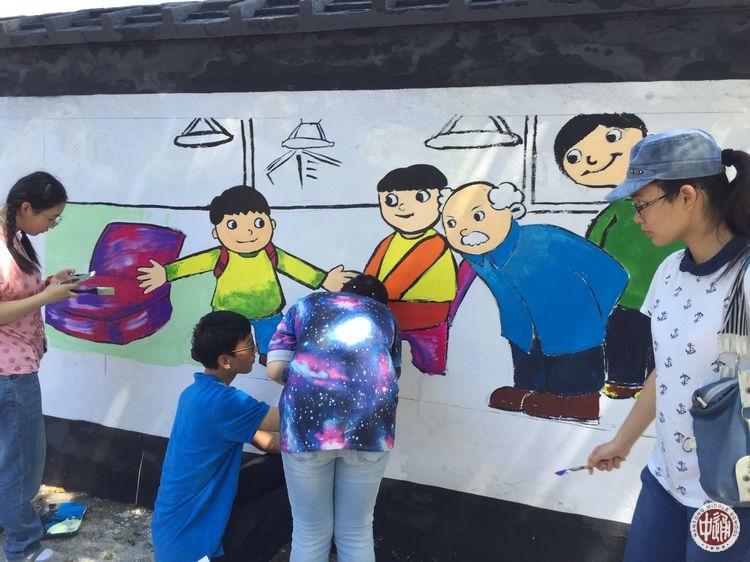 经过前期的动员部署和精心准备,活动当天秩序井然。虽暑气正起,烈日当头,但同学们热情满满、积极参与。他们或精心勾勒,流畅的线条显出娴熟的技巧,或大胆泼墨,畅快淋漓中尽显不羁本色,经过师生们长达5个小时的连续奋战,一幅幅精美的画作翩然“墙上”,成为初夏通城中一抹亮丽鲜艳的色彩。