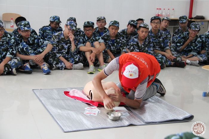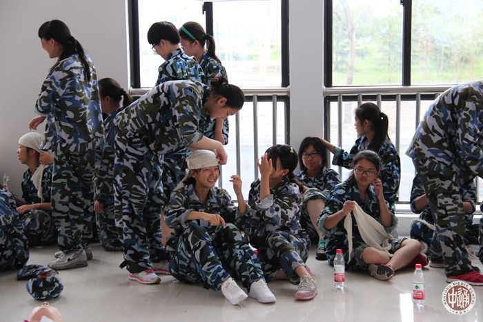 8月20日,高一新生军训进入第三天。由于室外时有阵雨,上午军训课程为红十字救护专项培训。救护是军人野外训练及作战必备技能,通过培训也使学生掌握日常防灾避险和自救互救能力,提高安全防范意识和应急救护知识技能。