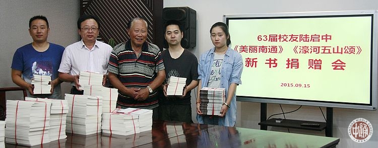 6月18日下午,我校1963届高中校友陆启中假座濠河之畔的沈寿艺术馆,举行了新诗集《南通放歌·濠河五山颂》和《南通放歌·美丽南通》的首发式。