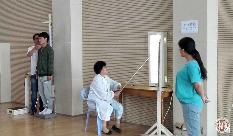 选拔高素质的空军飞行员是钢铁国防的有力保证,在2016年南通中学空军招飞宣传动员会举行之后,学校利用多种渠道进行了招飞宣传,学生积极申报。9月29日上午课间操期间,学校组织基本符合空军招飞条件的学生,进行了飞行员初检工作,对身高、体重、视力、色盲等项目进行了筛选。