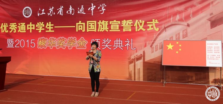 10月10日下午,2015级高一新生“做优秀通中学生——向国旗宣誓仪式暨第十四届馥华奖学金颁奖典礼”在学校操场隆重举行。馥华奖学金创立人、我校1953届著名校友、中科院院士、复旦大学数学系教授李大潜出席颁奖典礼。仪式由校团委书记张云主持。