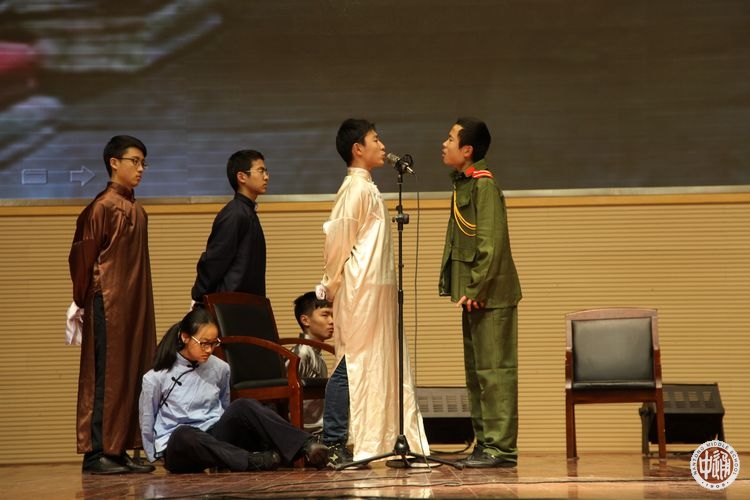 活动中,每个舞台剧构思精妙的情节与演员们精彩字正腔圆的诵读让同学们大开眼界。在小小的体育馆中,我们领略了古今中外、上下千年的经典美文的魅力。“将进酒,杯莫停”,我们感受到了谪仙诗人的洒脱与豪放;在遥远的香巴拉,那雅鲁藏布大峡谷边缘的神迹中,格萨尔王正奏着凯歌;雪域高原,戍守边疆,用热血捍卫每一寸国土的战士们也于无声中谱写了一曲《昆仑颂》;我们被《致茨维塔耶娃》中大无畏革命英雄主义精神所激励;我们还穿越到了风雨飘摇的民国,《庶民的胜利》让我们感受到了中国人的傲骨。我们在苏轼及其友人的引领下同游赤壁,领略“握手一笑三千年”那穿越时空、千年依旧的绝唱;我们在声情激越、气势磅礴的《满江红》里感受岳飞精忠报国的壮志豪情;我们在李煜悲情命运中感慨“故国不堪回首月明中“的亡国伤痛;我们感受通中校友马世和用满腹经纶和一腔碧血为江海大地谱写出的灿烂篇章,敬仰这位传奇巾帼的智慧和精神;我们回顾旧中国一路坎坷走来翻天覆地的变化,歌颂中国的繁荣富强……