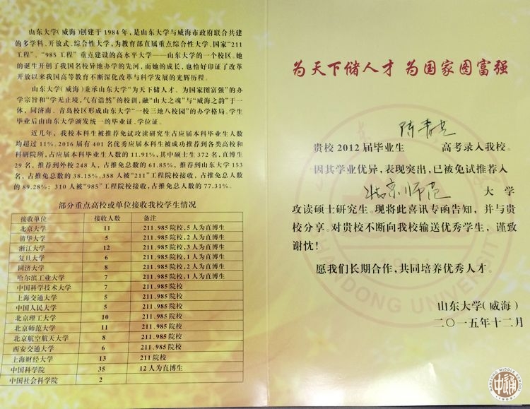 山东大学(威海)专函
