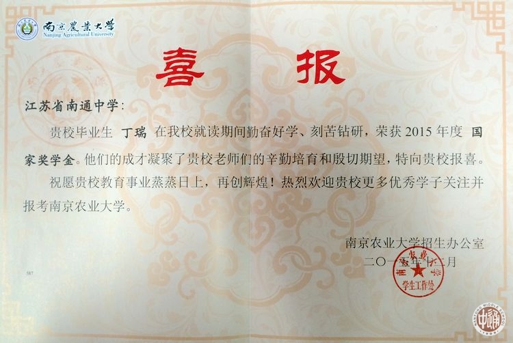 南京农业大学喜报