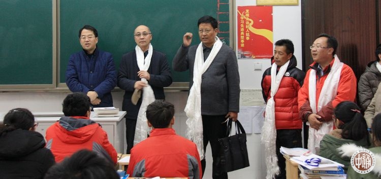 李明生校长一行首先来到高三17、18班的教室,看望了来自西藏、常年在通求学的学子,用家乡话对孩子们表达了慰问,送上了新年祝福,提出了勉励和希望;随后,双方在科学楼二楼会议室进行了座谈,在观看学校宣传主题片之后,姚天勇校长为来宾们详细介绍了我校民族教育的发展历程、教育特色及取得的成绩。