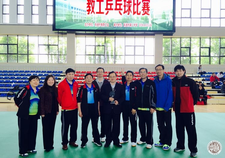 4月23、24日,南通市第十一届“五一劳动杯”教工乒乓球比赛在南通市第二中学体育馆举行。我校派出了10位选手参赛。沈惠祥副校长任领队,魏俊老师任教练,其余队员包括钱明华、朱正连、刘云高、刘晓华、徐峰、陈卫民、崔兵、施海城等8位老师。