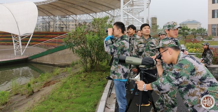 On the next morning, students went to the river bank to observe birds through telescopes and record what they watched.