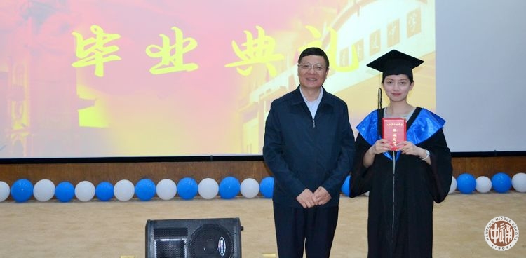 刘忠保副校长向毕业生颁发毕业证书。36位毕业生怀着激动的心情依次走到舞台中央,带着不舍与憧憬,和校长握手拥抱,合影留念。