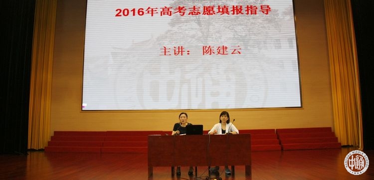 陈建云副校长对2015年、2016年两年高考的相关数据进行了比较分析,介绍了我校2016年高考的总体情况,介绍了2016年高考的相关动态信息,并指出志愿填报中可能出现中忽视的问题。陈校长还用精准的数据、详实的案例,对填报专业、填报学校两方面作了高考志愿填报的策略介绍。
