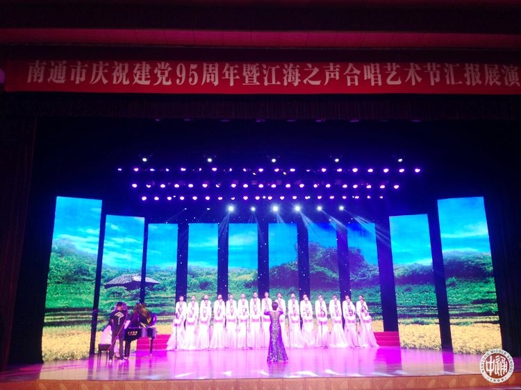 6月30日,由市委宣传部、市级机关工委、文广新局等单位主办的“江海之声”南通市第二届合唱艺术节决赛在市区更俗剧院举行。共有来自中小学组、成年组、老年组的26支队伍进行角逐,同时也为庆祝建党95周年献歌。我校高一合唱团参加了中小学组的决赛。在朱顺宝老师、季云霞老师的带领下,全体合唱团成员利用期末考试结束后仅有的两天训练时间,抓紧训练。比赛现场,他们以一曲饱含深情的《父老乡亲》唱出了通中学子的心声,吃水不忘挖井人,树高千尺也忘不了根,不管我们走多远,都忘不了我们的父老乡亲。动人的歌声展现了青年学子积极向上、知恩感恩的精神风貌。凭借对歌曲的完美演绎,我校最终以9.77分的全场最高分获得中小学组的金奖。