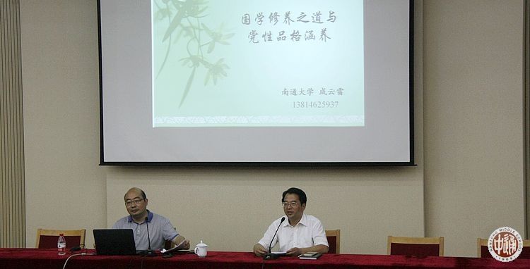 成云雷教授专题党课的主题为“国学修身之道与党性品格涵养”。成教授以何谓国学、国学的修养特质、国学修养之道历史悠久为起点,从修身立德为政价值观、主敬涵养修身方法论、清正廉洁道德实践论、理想追求生命境界论四个方面阐述了党员干部党性品格涵养必须从传统国学修养文化中汲取智慧的深刻内涵。成教授渊博的学识、浅近的讲课方式、幽默含蓄的语言风格深深地感染了在场的每一位党员同志,引领广大党员教工自觉汲取国学智慧,不断提升品格涵养。大家纷纷表示,今后一定会加强传统文化的研习,将传承经典与教育育人紧密结合,力求正心修身与提高师德修养的共同提升,在工作和生活中不断历练自身心境,持续提升个人涵养。