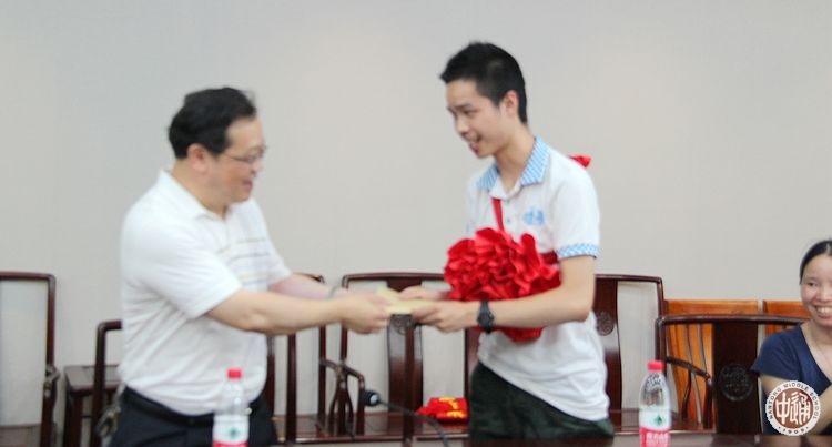 7月20日下午,我校在科学楼二会议室举行欢送座谈会,热烈祝贺我校高三14班金锐同学被海军航空工程学院及海军航空兵学院(3+2)录取,成为一名光荣的海军飞行学员。座谈会由学生处主任滕旻彦主持,副校长沈惠祥到会发表了热情洋溢的讲话,并代表学校特别颁发2000元奖学金。