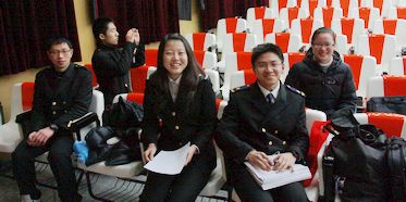 座谈会由2010届校友王唯主持。2007届校友杨烽、2009届校友沈辰和2010届校友王唯分别介绍山大、海大和东大的学校历史和校园生活。一同前来参加交流介绍会的还有山大的郭亚希和海大的陈阳、陆隽杰、冯天伦等校友。 上图和左图是座谈会上的校友们。他们热诚邀请母校的学弟学妹考上自己所在的大学。 |