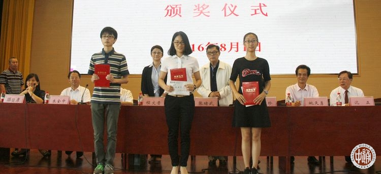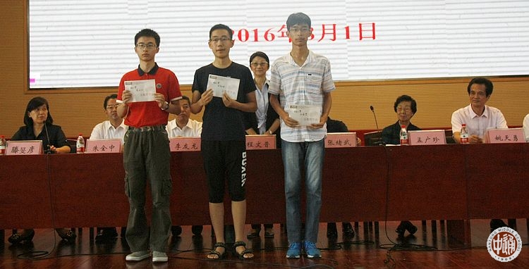 在沈惠祥副校长宣读“江苏省南通中学第四届‘金鳌奖学金’表彰决定”之后,张绪武先生、程文晋女士为获得第四届“金鳌奖学金”的三位学子颁发证书和奖金,为获得提名奖的三位学子颁发纪念品。