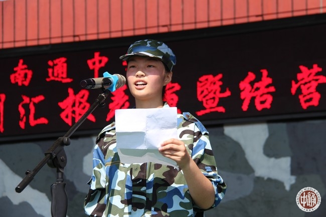 结营仪式上对军训先进班级和军训优秀学员进行了表彰,高一4班夏安楠同学代表全体学员作了军训总结发言。