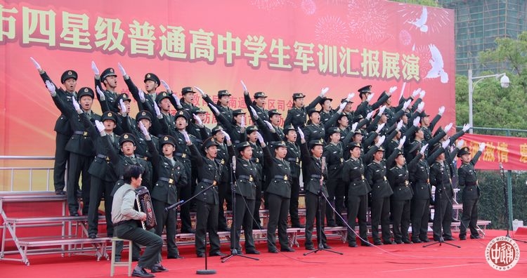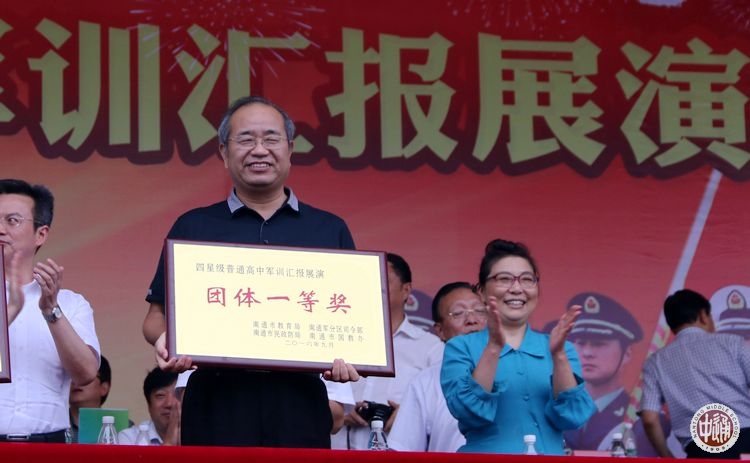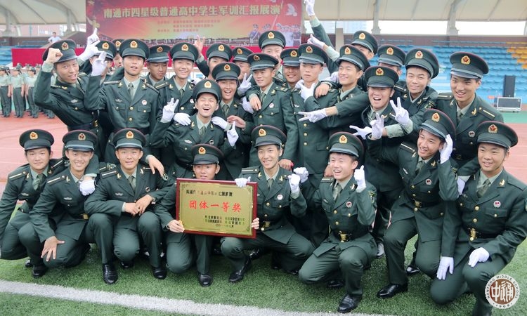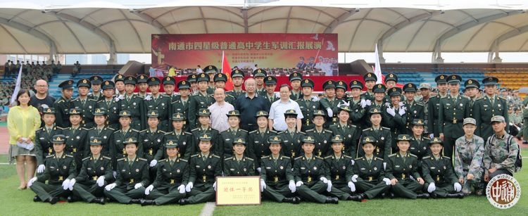 9月11日,南通市教育局、南通军分区司令部、南通市民防局、南通市国防教育委员会办公室联合举行的南通市四星级普通高中学生军训汇报展演在南通大学附属中学的操场举行。南通大市24所四星级高中的千余名高一新生军训代表在这里展示他们的军训成果。