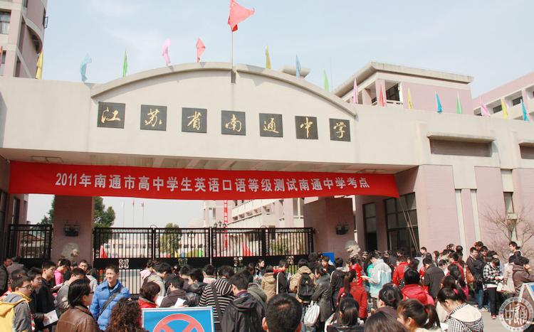 2011年南通市高中学生英语口语等级测试于3月26日全天至27日上午举行,全部考生测试总时间为一天半。市区考生在我校和南通一中两个考点参加测试。在我校考点参加测试的考生约2400余人,我校考生全部在南通一中考点接受测试。