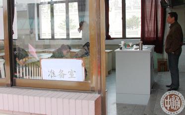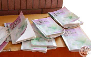 我校考点共设24个测试室,另设准备室和预备室各6个。考生每半天分3批进行测试。测试前30分钟考生进入预备室待考,同时检查准考证并了解《考生守则》、《违纪处理办法》和测试程序;测试前5分钟进入准备室阅读考卷准备测试(左图);进入测试室后的测试时间为不超过6分钟(下图)。本次测试方式为考生英语回答问题,测试内容以译林出版社出版的《2011年江苏省高中英语口语等级测试刚要(试行)》(左下图)为依据。 |