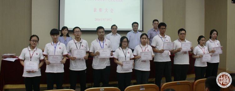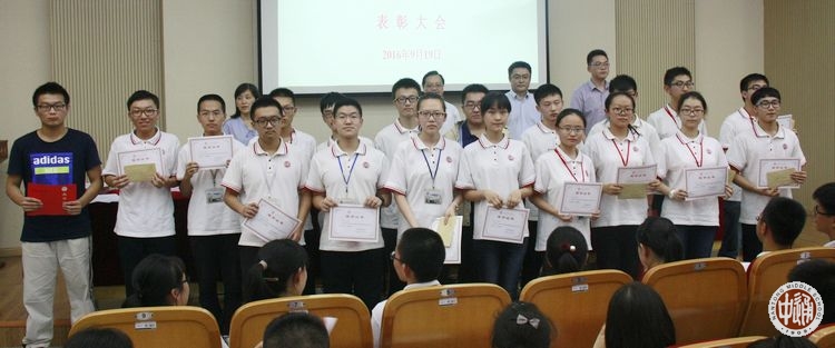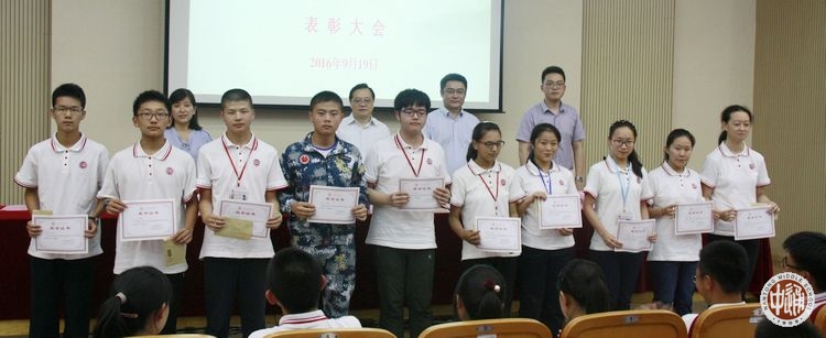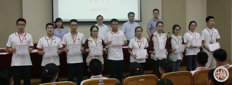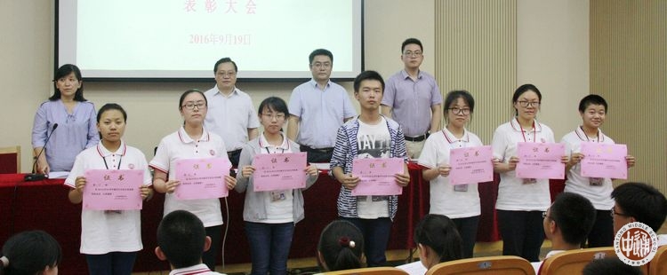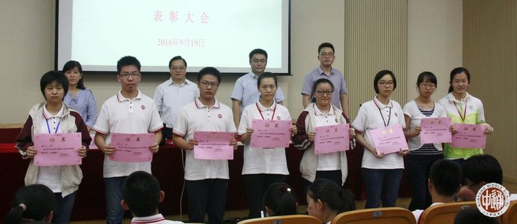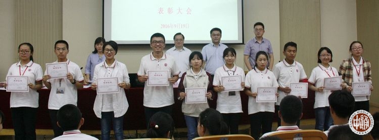 9月19日下午,我校在科学楼三楼报告厅举行上学年度优秀学生先进集体表彰大会,学生处主任滕旻彦主持会议并宣读表彰决定,沈惠祥副校长到会讲话,南纤博爱奖助学金资助方南纤公司工会办公室主任蒋祖滨、南纤公司团委书记陆峰峰到会颁奖。获奖学生及高一年级学生代表参加现场活动,颁奖实况向全校各班直播。