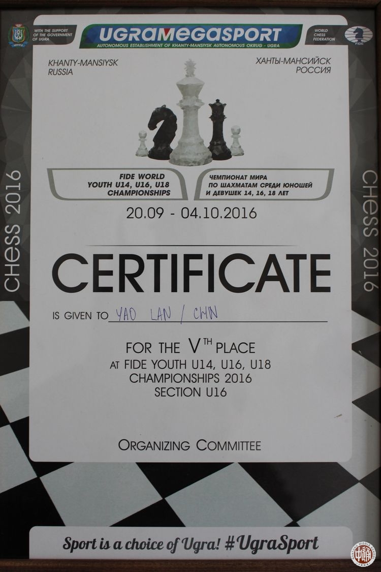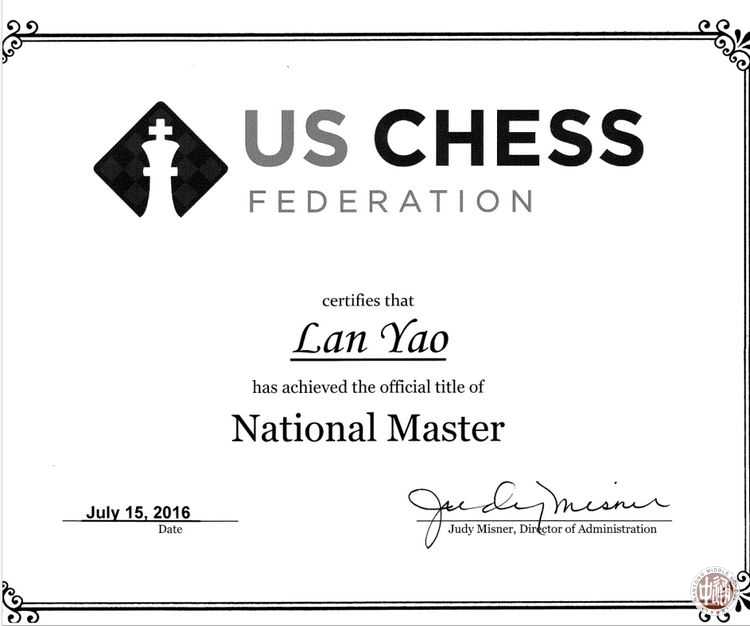 另,在今年暑假美国和欧洲的比赛中,姚岚还分别获得了美国国家大师称号和一个女子国际大师序分。
