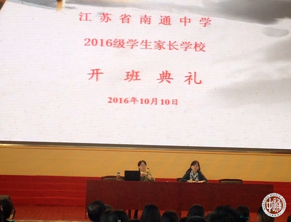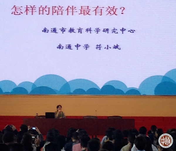 10月10日下午,我校2016级高一家长学校举行开班讲座。学生处滕旻彦主任主持活动,我校国家二级心理咨询师、南通市教科研中心心理教育兼职教研员符小斌老师为全体家长作题为“怎样的陪伴最有效”的专题讲座。
