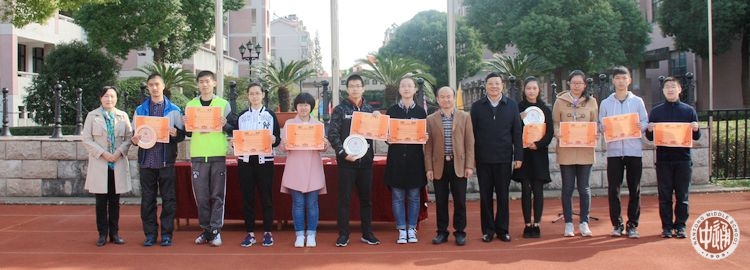 11月1日课间操,学校举行第141届田径运动会颁奖仪式,仪式由教务处徐德均副主任主持。仪式上,陈建云副校长代表组委会宣布了本届田径运动会的“田径比赛团体总分”“入场式评比”及“精神文明班级”等各项评比的结果;陈文辉书记、刘忠保副校长、陈建云副校长为获奖班级颁奖。