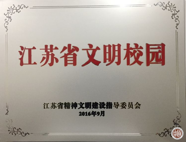 10月11日,全省深化道德讲堂建设暨精神文明建设表彰会在常州召开,会上对2013-2015年度江苏省文明行业、文明村镇、文明单位(社区、校园)进行了命名表彰。我校荣获2013-2015年度“江苏省文明校园”称号。