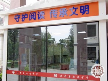 校园自助书吧建设在躬行楼下,靠近南北校区主通道,欢迎全校师生前往借阅图书,“守护阅读,传承文明!”