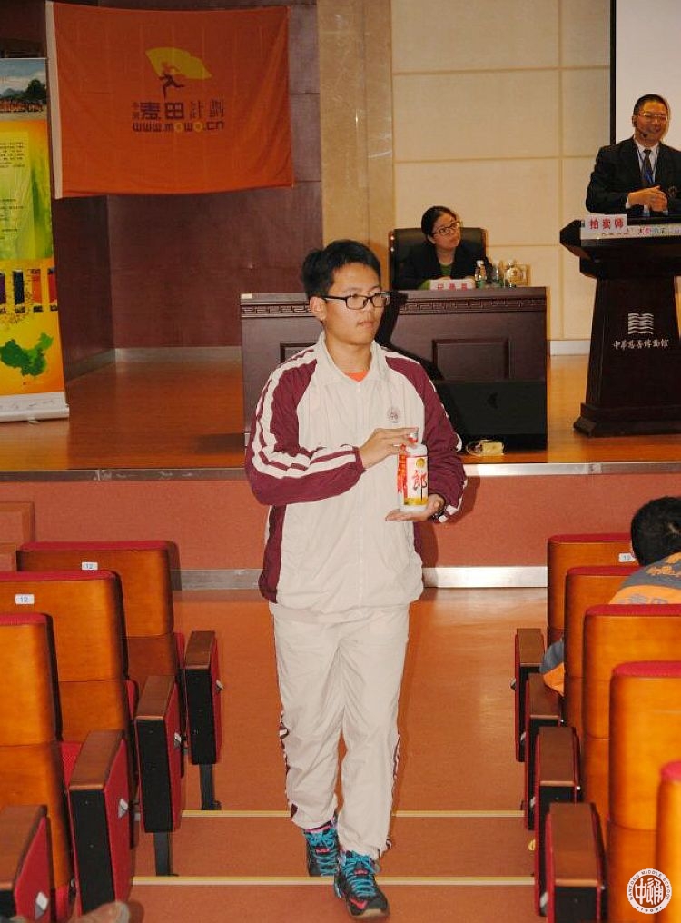 两点,拍卖会准时开始。各方爱心人士积极竞价,现场气氛热烈。此次所有的拍品展示工作均由我校天使基金志愿者完成,台上台下,志愿者们小心认真地展示着各件物品。