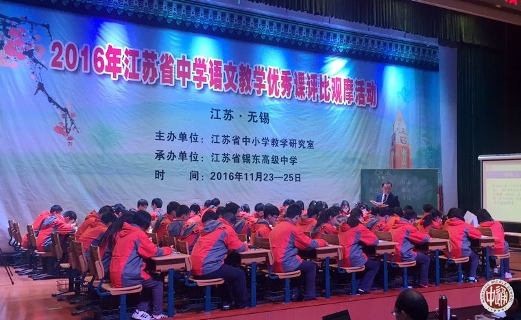 11月24日至25日,由江苏省中小学教学研究室主办的江苏省2016年高中语文评优课活动在江苏省锡东高级中学举行。来自全省各大市的14位代表参加了比赛。代表南通市参赛的金卫老师参赛课题为苏轼的《定风波》。最终,金老师凭借精心的教学设计、沉稳的课堂表现和高超的课堂驾驭能力,得到了评委的一致好评,荣获一等奖。