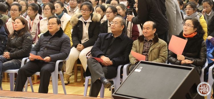 大赛邀请了音乐学科老师现场评比打分。成锦平校长、陈文辉书记、沈惠祥副校长以及学校相关处室的领导也亲临现场,担任嘉宾评委,与高一年级全体师生一起饶有兴致地观看了整场表演。