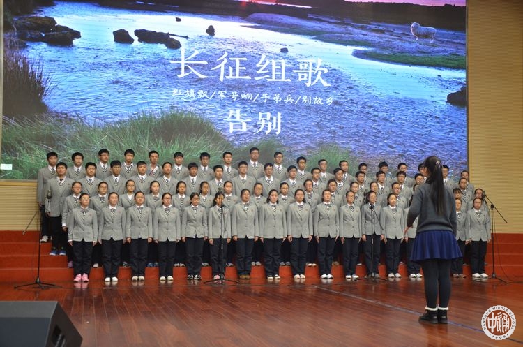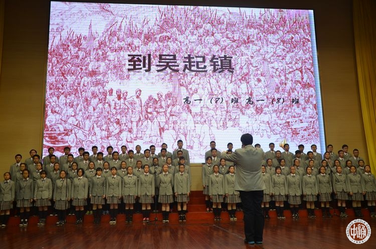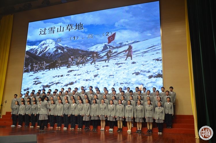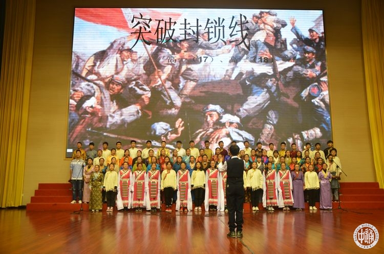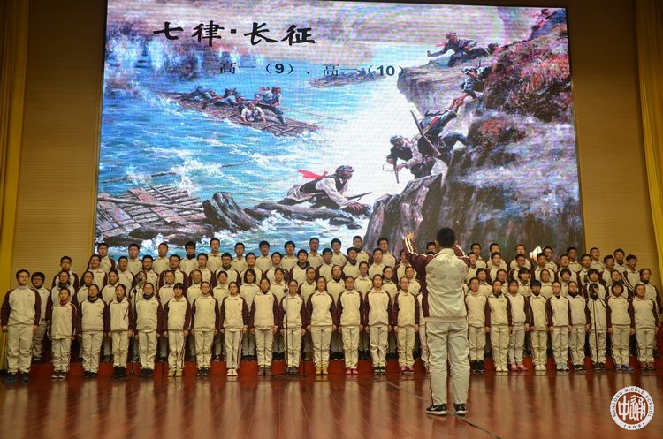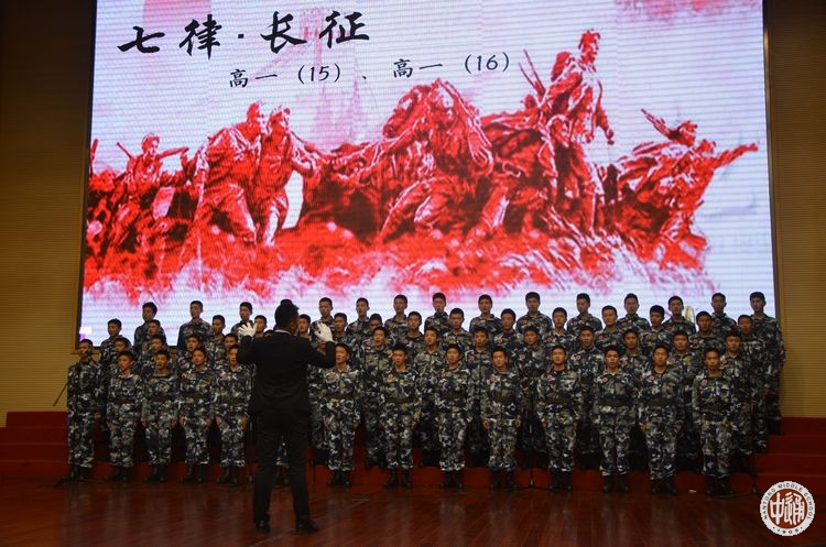 此次合唱比赛的参赛队以相邻两个班级为组合。每组参赛队演唱一首限定范围内的红军长征歌曲,另外再自选一首歌曲。比赛现场,高一(11)、(12)班的同学首先深情歌唱一曲《告别》,表现了红军爱民、人民拥军的温情画面,自选曲目《爱,因为在心中》又将合唱与舞蹈相结合,营造了温暖和谐的氛围;高一(1)、(2)班带来的《过雪山草地》,唱出了红军战士不畏艰险,创造两万五千里奇迹的光荣与自豪;自选曲目《平凡之路》将器乐伴奏融于合唱之中,新颖别致;高一(13)、(14)班的同学身着军服,齐唱《十送红军》、《我相信》,饱含深情,又不乏画面感;高一(9)、(10)班同学以《七律·长征》、《隐形的翅膀》两首歌表达了他们对祖国的热爱以及对生活的美好憧憬;高一(7)、(8)班带来《到吴起镇》、《奔跑》,唱出了革命胜利的喜悦,唱出了青春奋斗的激情;高一(17)、(18)班的西藏班同学身穿民族服饰,献上了《突破封锁线》、《阳光》,热情的演唱,优美的舞蹈以及献出的一条条洁白的哈达,将全场的气氛推向高潮;高一(3)、(4)班用嘹亮的歌声演绎了《四渡赤水出奇兵》,热情讴歌红军指战员占地烽火中用兵如神的大智慧,一曲耳熟能详的《国际歌》又唱出了为伟大事业斗争到底的雄壮豪迈;高一(15)、(16)航空班高唱《七律·长征》、《祖国不会忘记我》,雄壮嘹亮的歌声表达了他们报效祖国的坚定信念与决心;高一(5)、(6)班在合唱《十送红军》和《中国军魂》中,还精心设计了队型的变换,别具匠心的艺术编排吸引了观众的目光,为整场演出画上了圆满的句号。