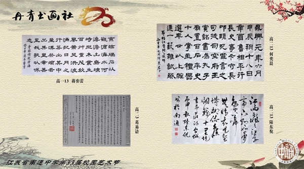 经过作品征集和精心准备,12月20日中午,丹青书画社作品展开展。每年校园艺术节期间,学生处和团委组织社团巡礼,各社团认真准备,积极展示自己社团的活动成果。丹青书画社是活跃程度较高的社团,很多作品参加各级各类比赛获奖,积极承担美国、香港等地来访代表团的文化交流活动,获得了大家的一致好评。本次书画展将持续一个月的时间,欢迎大家前往图书馆一楼参观。