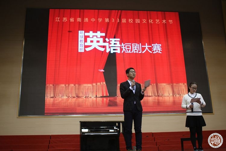 12月23日下午,“环球教育杯”英语短剧比赛在新健雄馆内举行。这也是校园文化艺术节的传统赛事。高二的20个班级根据英语老师所教班级,两两组合,给我们带来了10部精心编排的英语短剧。比赛由高二(2)班孙炜宁和高二(10)班唐笑嫣主持,校英语学科的多位老师担任了比赛的评委。