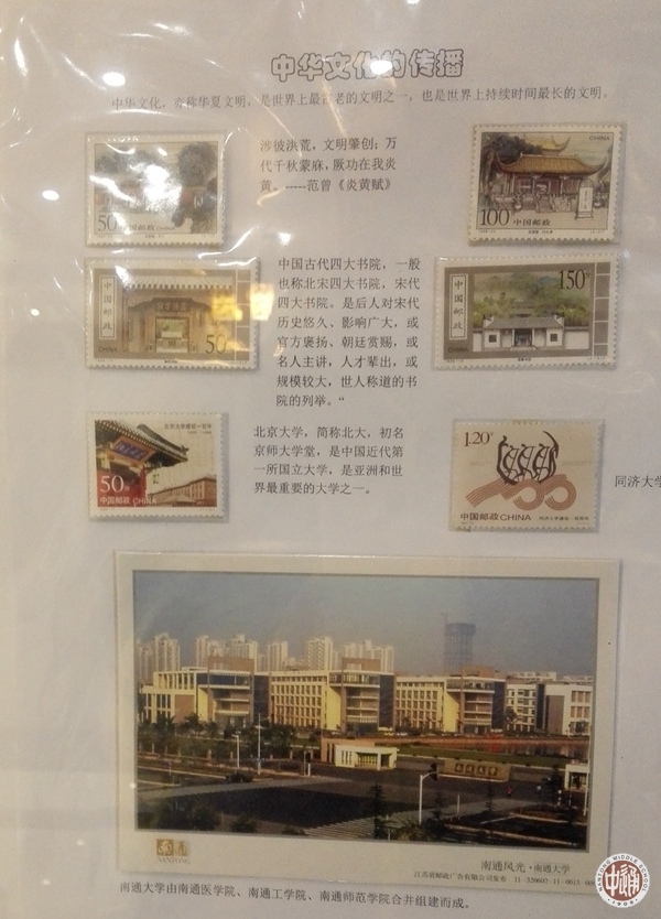 我校集邮社团精心制作的“一页邮集作品”展,已在宏观楼(图书馆)底楼大厅布展。集邮社团是一个成立时间较短的社团,平时在一起会进行一些有关集邮的相关交流。在本次社团巡礼中,特意制作了一页邮集进行社团展示。本次活动展出了高一1班蒋政延制作的《美丽中国》、高一7班朱芊语制作的《中国古代建筑》、高二14班宋俊潼制作的《昆虫》、《中华文化的传播》、《猫科动物》、《古镇风情》以及高二13班周圣韬制作的《水乡》、《药用植物》等作品,本次活动展示了集邮社团阶段性的活动成果,增加了“文化校园”的内涵。
