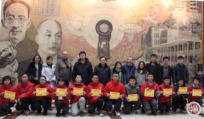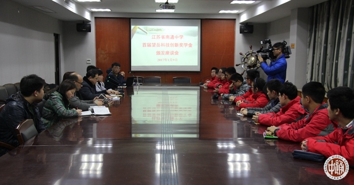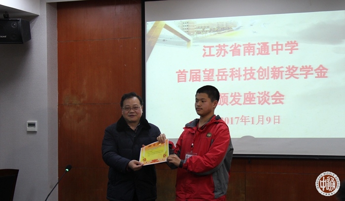 1月8日下午,我校在一会议室举行简朴而又郑重的首届望岳科技创新奖学金颁奖活动。学生处滕旻彦主任主持活动,学生处及部分班主任老师参加仪式。望岳科技创新奖学金是由我校校友周谦益、施沛哲、裴宇晨、蔡伟、汤林鹏、吴培等二十多位同学创立的。校友们设立该项奖学金一是为纪念我校原信息学科岳军老师,二是为激发学校科技创新和信息技术氛围,三是为帮扶在校学生在科技创新上的发展,开启创新人才成长之路。