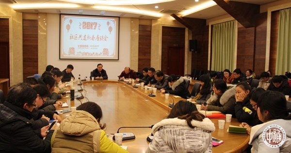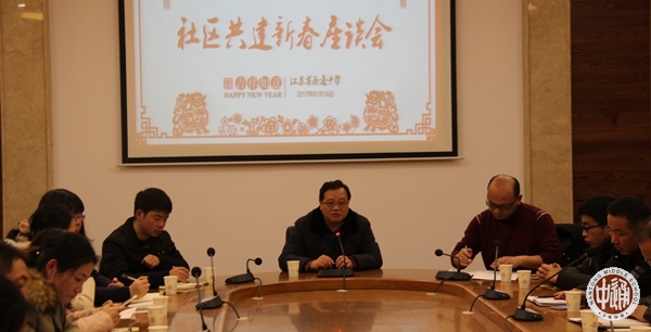 1月16日下午,2017年南通中学社区共建新春座谈会在国际部二楼会议室举行,会议由校关工委委员、学生处副主任潘雪峰主持,沈惠祥副校长和各街道社区干部出席了会议。