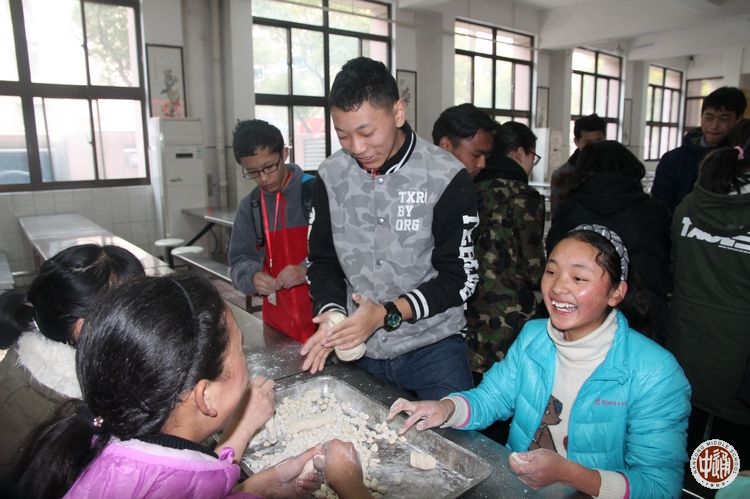 3月25日,藏历二十九日下午,我校高一高二四个班各出20位同学齐聚在学校食堂,按照藏族习俗制作当晚的美食“古突”。可别小瞧这些十五六岁的年轻人,从和面到捏面团,各个都动作娴熟,几个能手还把面团捏成花瓣、叶片等创意造型。这次同学们因地制宜改良了“古突”的夹心,准备了数张小纸片,把各种物品的名称写在纸片上包进“古突”中。