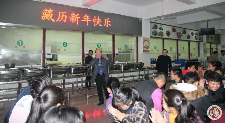 陈书记祝愿同学们藏历新年扎西德勒!并提议西藏班同学们借此新年之际向长期关心呵护他们健康成长的老师、食堂工作人员、保安人员、宿管人员致以衷心的感谢和藏历新年的问候。致辞最后,陈书记即兴为西藏班的同学们演唱了《青藏高原》,那么亲切的旋律,那么高昂的演唱,激发出藏族同学们的热情,他们使劲的鼓掌叫好。