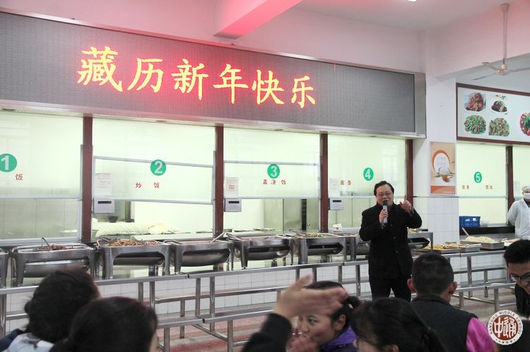 下午5时许,学校党委书记陈文辉、副校长沈惠祥,民族处主任於锡龄,以及西藏班的班主任老师和生活老师等与同学们共迎藏历新年。