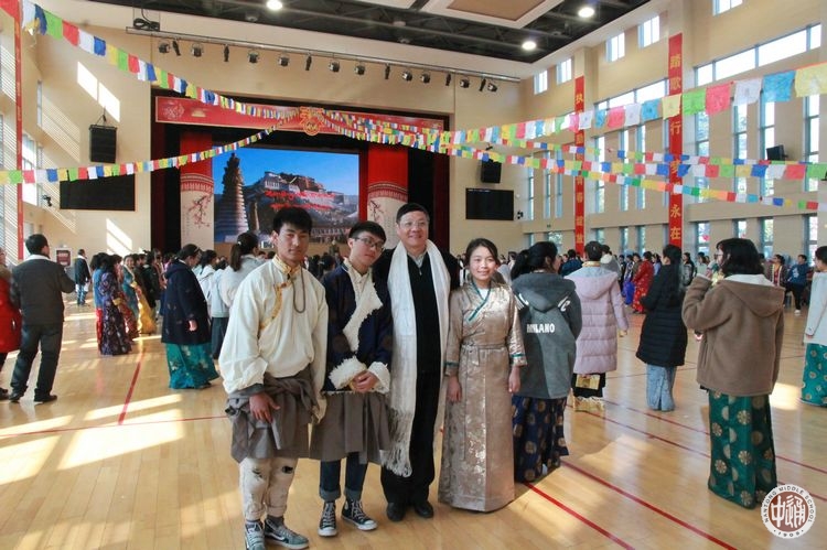 西藏班的老师们也参与到拜年活动中。热情好客的西藏生排起长队,手捧自制切玛,唱着新年祝福的藏歌,向老师们敬献吉祥切玛和洁白哈达。老师们也用藏族的方式给同学们送上深深的新年祝福,祝福同学们在新的一年万事吉祥、扎西德勒!