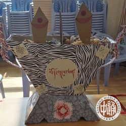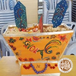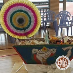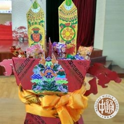 升旗仪式后,所有的藏族同学齐聚校新体育馆,欢庆新年。此时的新体育馆中高悬起五彩经幡,场地四周的小桌上则摆上每个宿舍手工制作的“切玛”。“切玛”是一个斗状的长方形木盒子,上面刻有精美的图案,中间用板隔开,里面放上糌粑、青稞等粮食,上面插上青稞穗和油花,它是吉祥如意的象征。新年时藏族人民有家家户户供“切玛”,人人尝“切玛”的传统。我校西藏班有着在藏历新年手工制作“切玛”的传统,以宿舍为单位,同学们自行设计和制作,把满满的心意和祝福融入在“切玛”这吉祥物品的制作中。