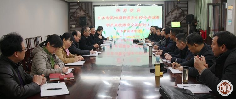 为了进一步提高管理水平,学习交流教育教学管理、课程改革、校园文化建设等方面的先进经验,助推新任职校长的专业发展,在江苏省教师发展中心的统一安排下,“江苏省第28期高中任职校长班”南通1组的10名学员校长莅临我校,开展为期一周的跟岗学习。