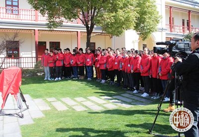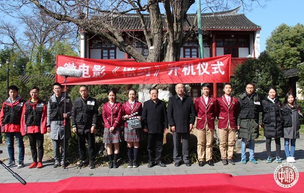 最后,成锦平校长为微电影《楸约》开机揭幕!在暖意盎然的春光里,学校领导和全体演职人员愉快合影。