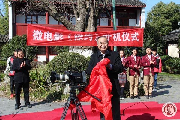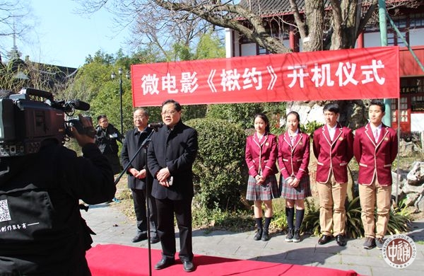 开机仪式上,沈惠祥副校长发表热情洋溢的讲话,他说这部微电影的拍摄传播,必将进一步宣传推介南通中学德育工作,全面提升学生的道德素养。仪式上,沈校长向为《楸约》微电影付出艰辛劳动的创作人员、摄制组以及剧组全体演职人员表示亲切的慰问!
