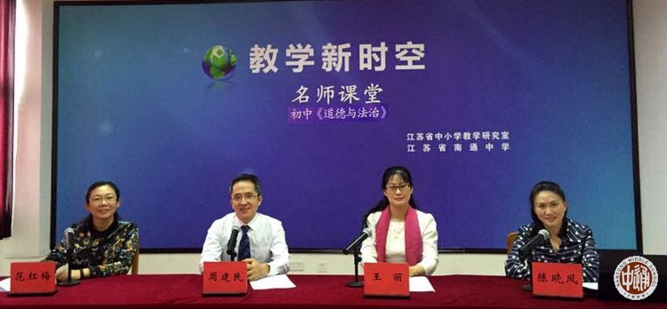 4月25日,名师课堂(初中《道德与法治》)展播和研讨活动在我校直播室举行。直播由南通市教育科学研究院中学政治教研员、正高级教师陈晓凤主持。